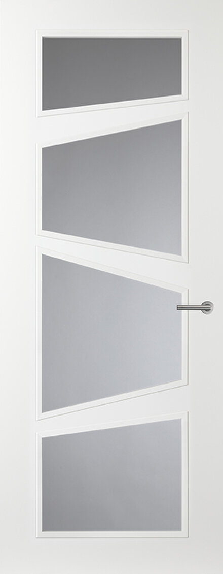 De RD01 glasdeur in Alpine Wit heeft een krachtig en symmetrisch ontwerp dat direct opvalt. Combineer met lijndeur RD51 voor een moderne en samenhangende stijl in huis.