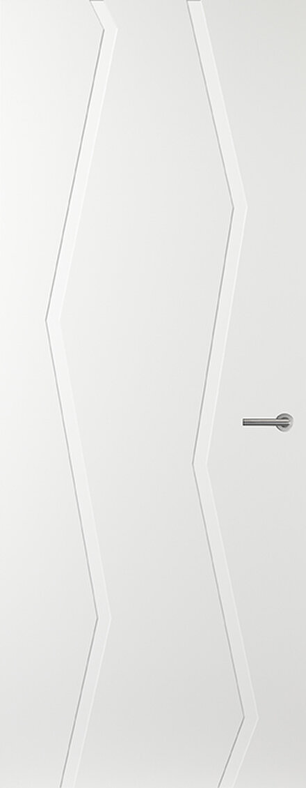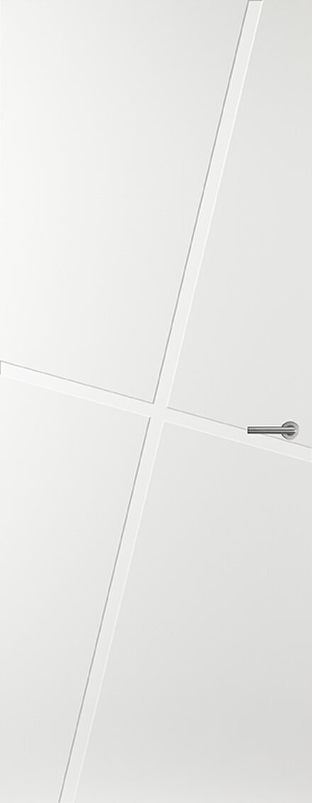 De RD54 lijndeur in Alpine Wit valt op door zijn krachtige, symmetrische lijnenspel. Combineer met glasdeur RD04 voor een stijlvol en prachtig geheel in huis.