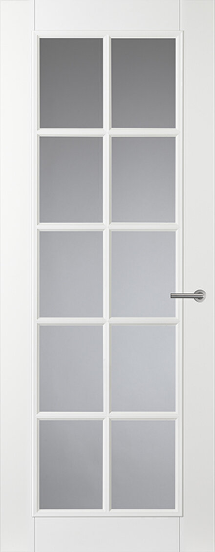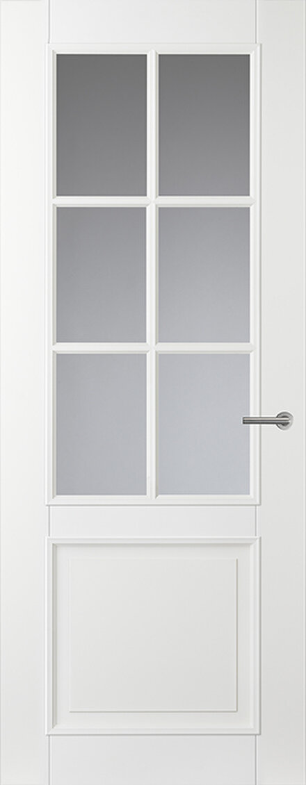 De CA18 glas-/paneeldeur in Alpine Wit heeft een klassiek ontwerp met een ruime glaspartij die veel licht doorlaat. Samen met de paneeldeur CA08 ontstaat een stijlvol en samenhangend geheel in je interieur.