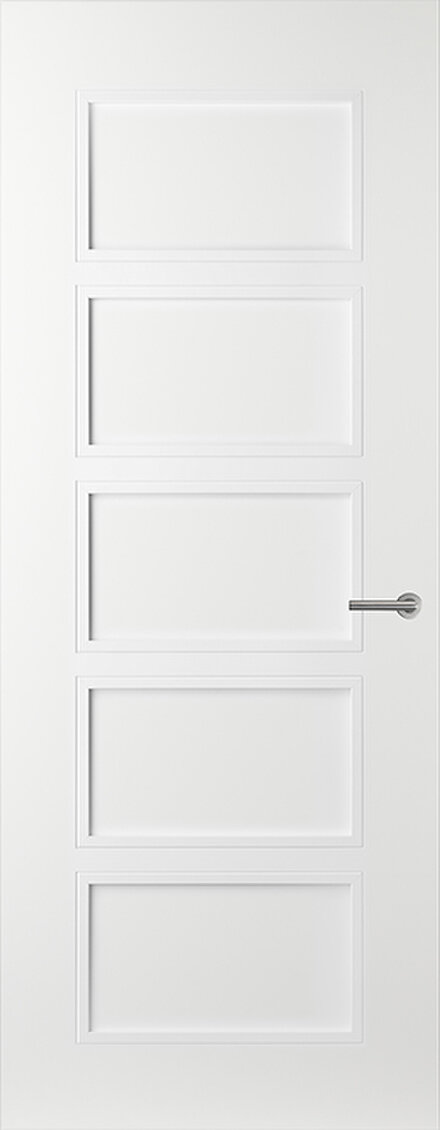 De AE45 paneeldeur in Alpine Wit heeft vijf panelen die samen een klassiek patroon vormen. Combineer met glasdeur AE35 of lijndeur AE75 voor een stijlvol geheel in je interieur.