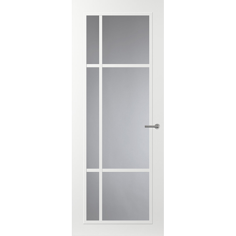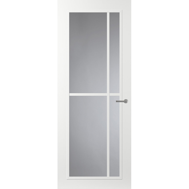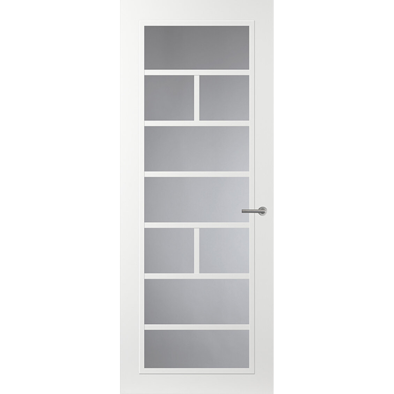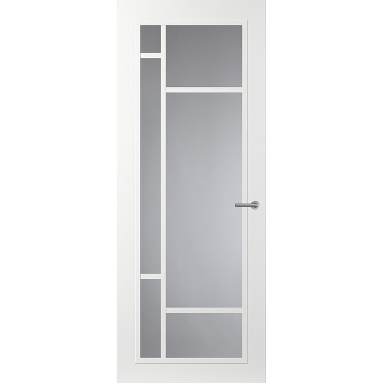 De FR506 glasdeur in Alpine Wit heeft een strak lijnenspel van horizontale en verticale glaslatten. Deze moderne deur laat veel licht door en combineert perfect met lijndeur FR556 voor een samenhangend geheel in je woning.