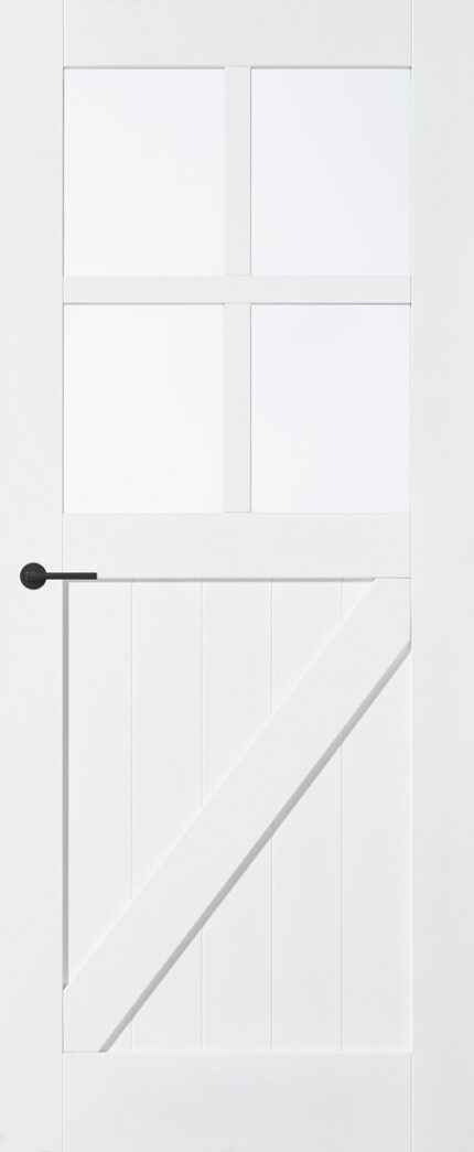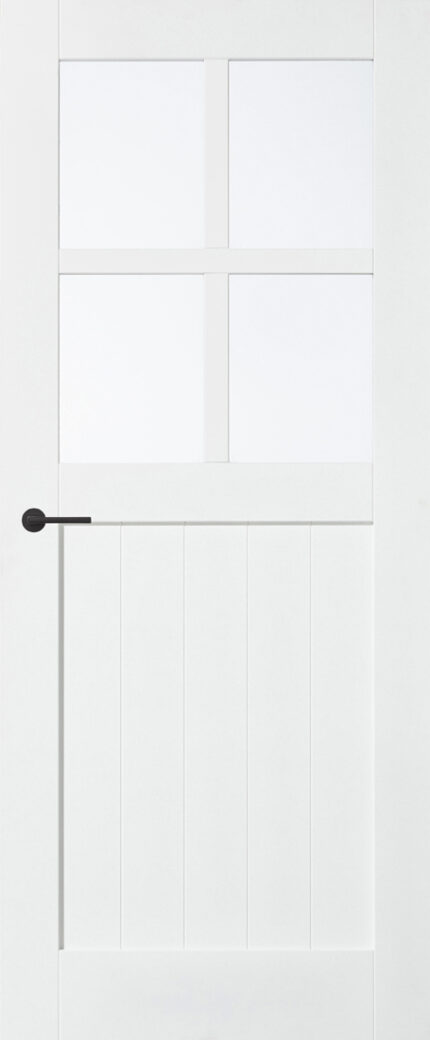 De Cottage SKS 2518 is een paneeldeur met blank glas die zorgt voor een lichte en open doorgang. Deze binnendeur komt uit de Cottage serie en is geschikt als draaideur of als schuifdeur met een passend systeem.