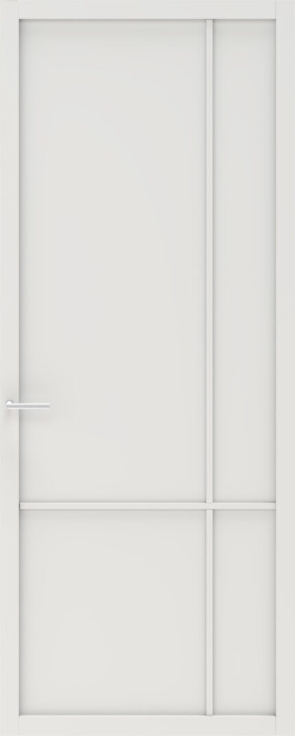 De SlimSeries One SSL 5008 is een gesloten binnendeur met een horizontale verdeling en een wit gegronde afwerking. Een rustige basis binnen de SlimSeries One, geschikt om zelf af te werken of te laten aflakken.