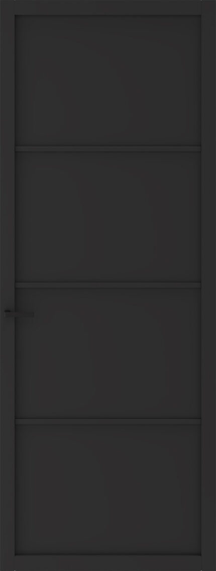De SlimSeries One SSL 4904 is een gesloten binnendeur met een horizontale verdeling en een zwart gegronde afwerking. Een rustige deur binnen de SlimSeries One, bedoeld om zelf af te werken of te laten aflakken.