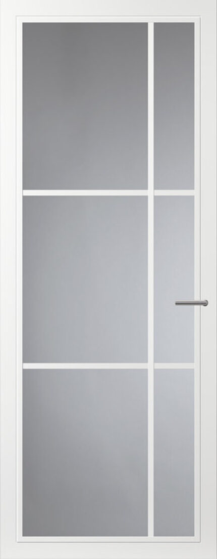De FM06 glasdeur in Extra Wit heeft een ultraslanke profilering en een minimalistische uitstraling. Kies uit witte of zwarte glaslatten en combineer met lijndeur FM56 voor een moderne eenheid in huis.