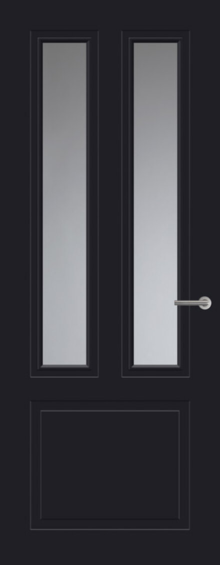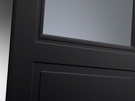 De Cameo CE121 Diep Zwart glas-/paneeldeur combineert glas en paneel in één deur dankzij innovatieve 3D freestechniek. Deze zwarte binnendeur heeft de warmte van paneeldesign gecombineerd met lichtdoorval van glas en moderne, strakke lijnen. Perfect te combineren met paneeldeur CE09 voor een krachtige, stoere eenheid.