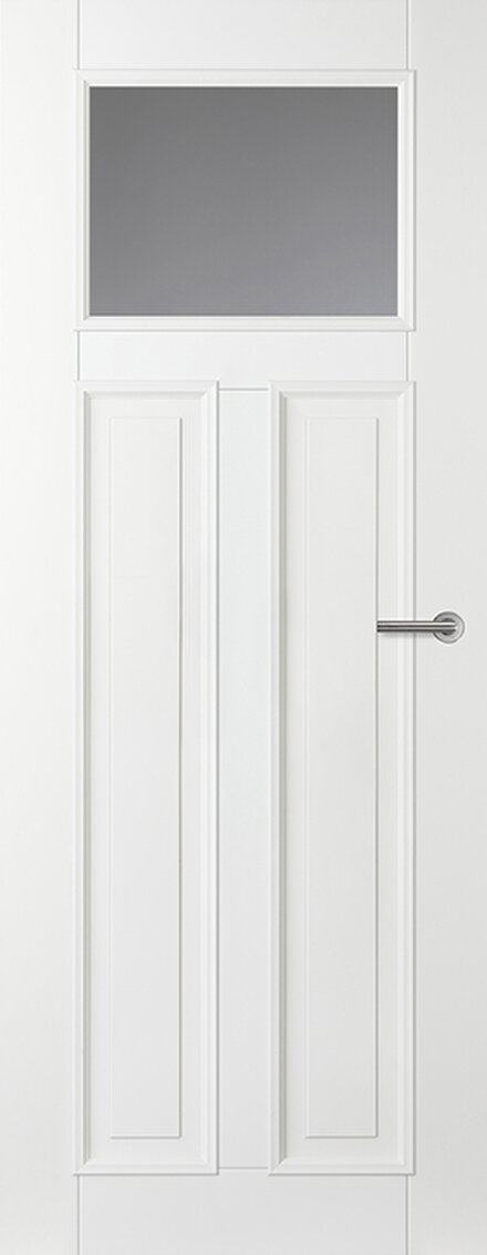 De CA18 glas-/paneeldeur in Extra Wit heeft een klassiek ontwerp met een ruime glaspartij die veel daglicht doorlaat. In combinatie met de paneeldeur CA08 ontstaat een rustig en samenhangend geheel dat in vrijwel ieder interieur past.