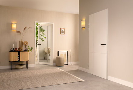 De Extra Witte afwerking benadrukt de lichte en frisse uitstraling van de deur. Hierdoor is de FM55 geschikt voor uiteenlopende woonstijlen, van modern en minimalistisch tot meer klassiek ingericht.