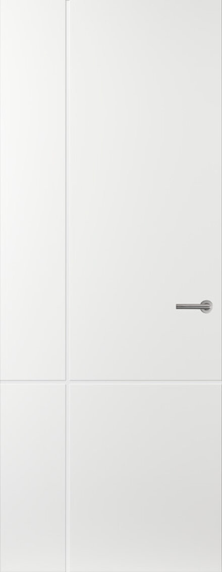 De Form FM55 in Extra Wit valt op door zijn krachtige diepe lijn en ultraslanke design. Het moderne lijnenspel geeft de deur een minimalistische en eigentijdse uitstraling die rust en helderheid in huis brengt.
