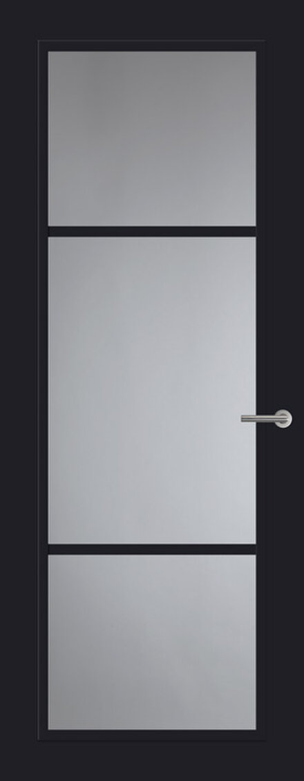 De Front FR515 in Diep Zwart is een binnendeur die meteen opvalt door zijn horizontale glaslatten. Het strakke lijnenspel geeft de deur een uitgesproken en moderne uitstraling, terwijl de diepe zwarte kleur een stoer, industrieel accent toevoegt.