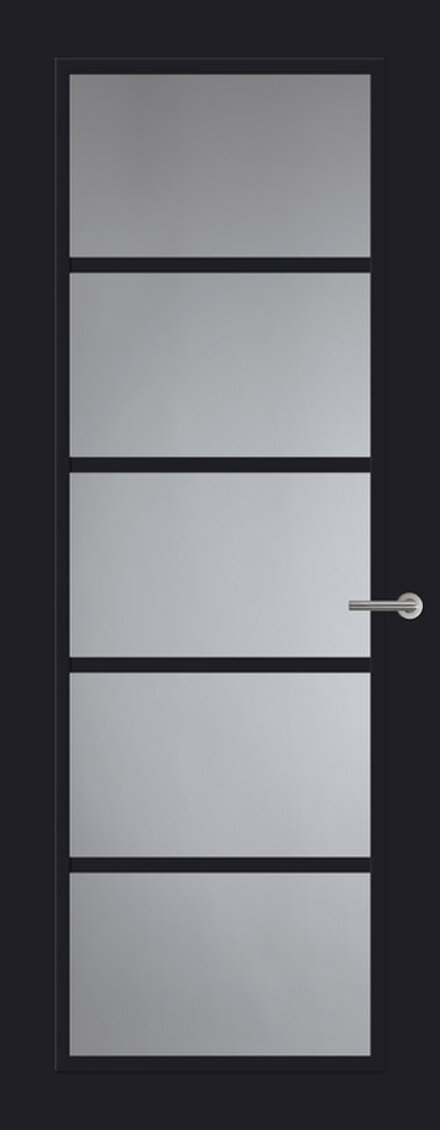 De Front FR516 in Diep Zwart is een glasdeur die meteen opvalt door zijn strakke horizontale glaslatten. Het lijnenspel geeft de deur een uitgesproken karakter, terwijl de diepe zwarte kleur zorgt voor een robuuste en moderne uitstraling die perfect past bij industriële woonstijlen.