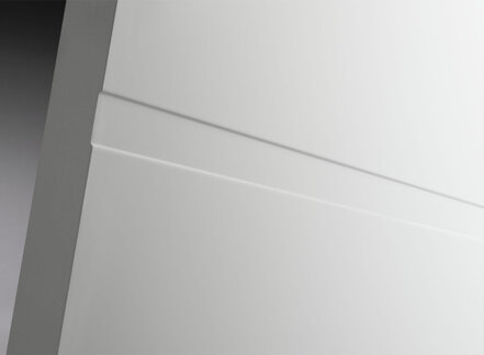 De FR563 lijndeur in Extra Wit heeft een strak lijnenspel en een moderne, lichte uitstraling. Combineer met glasdeur FR513 voor een stijlvol en samenhangend geheel.