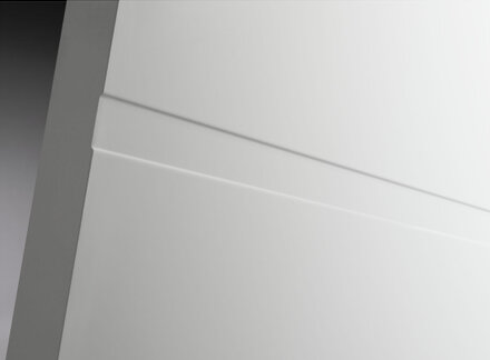 De FR567 lijndeur in Alpine Wit heeft een strak lijnenspel en een frisse uitstraling. Combineer met glasdeur FR517 voor een mooi en modern geheel in je interieur.