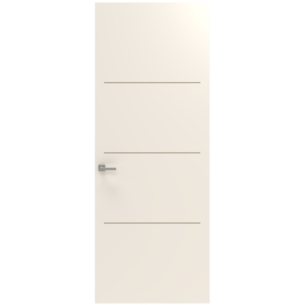 Deze uitvoering is uitgevoerd in Silk White, een kleur die RAL 9010 benadert. De deur is EBC gelakt, wat zorgt voor een slijtvaste en krasbestendige afwerking. Binnen de Nano TopCoat EBC serie is dit model ook verkrijgbaar in Imperial White mat, Velvet Black mat en Graphite Grey mat.