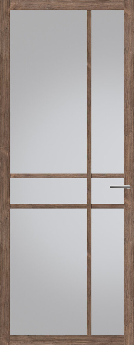 De NDB905 in Donker Eiken combineert de gezellige warmte van donker hout met een moderne, strakke glasindeling. Het diepe eiken straalt kwaliteit en betrouwbaarheid uit, perfect voor wie houdt van natuurlijke materialen maar wel een eigentijdse uitstraling wil. Deze deur voegt direct karakter toe aan je interieur.