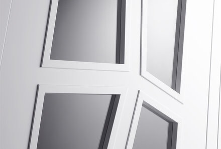 De Random RD03 in Extra Wit is een glasdeur met een uitgesproken karakter. Het symmetrische lijnenspel benadrukt het krachtige design en maakt de deur tot een opvallend onderdeel van je interieur.