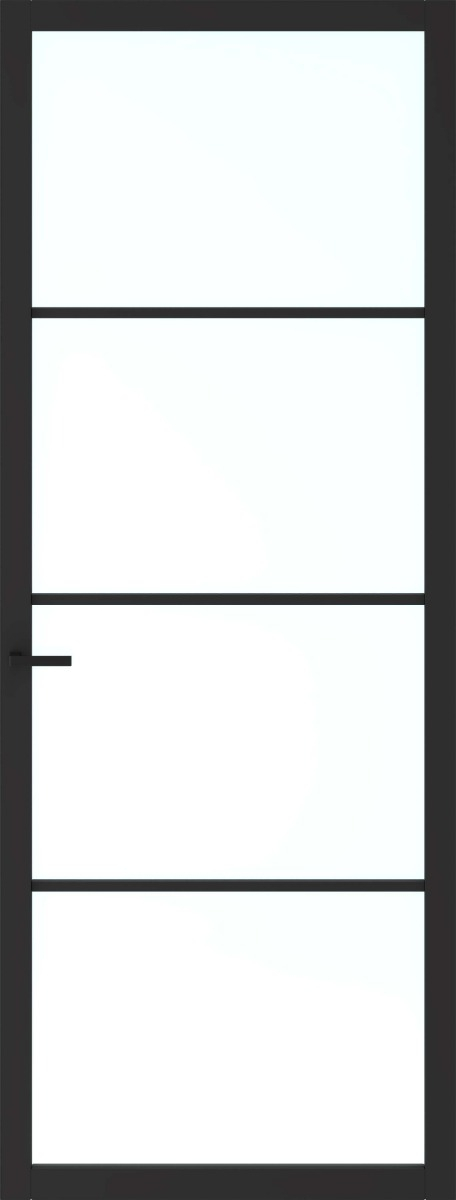 De deur wordt geleverd in een zwarte grondverf (bij benadering RAL 9011). Deze donkere basis zorgt ervoor dat je de deur na plaatsing heel makkelijk in een zwarte of antracietkleurige lak kunt afwerken. Voor wie liever een lichtere basis heeft, is dit model ook verkrijgbaar in een witte grondverf.