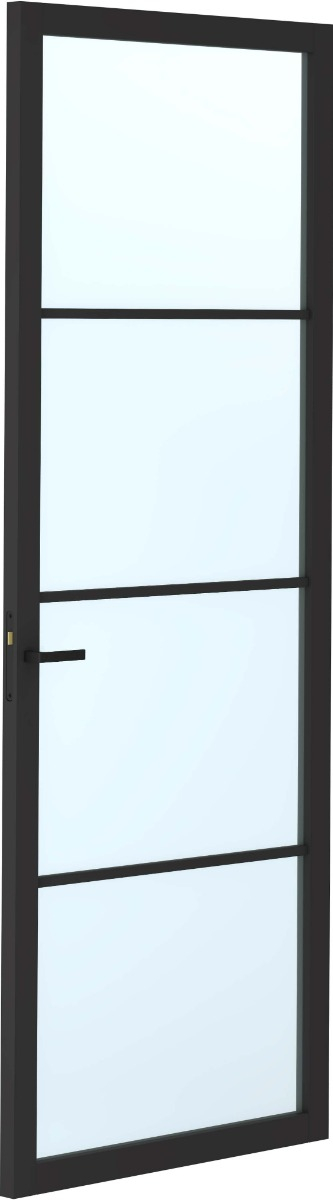 De SlimSeries One SSL 4504 is een zwart gegronde glasdeur met een verfijnde roedeverdeling van 20 mm. Door de smalle stijlen en de verschillende glasopties is dit een moderne keuze die past in elk eigentijds interieur.