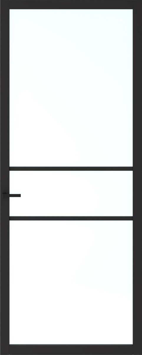 De deur wordt geleverd met voorgemonteerd blank glas of optioneel rookglas of nevelglas. Dit laat veel daglicht door en houdt zicht tussen ruimtes mogelijk. Daardoor is deze deur geschikt voor plekken zoals de woonkamer, keuken of hal, waar licht belangrijk is.