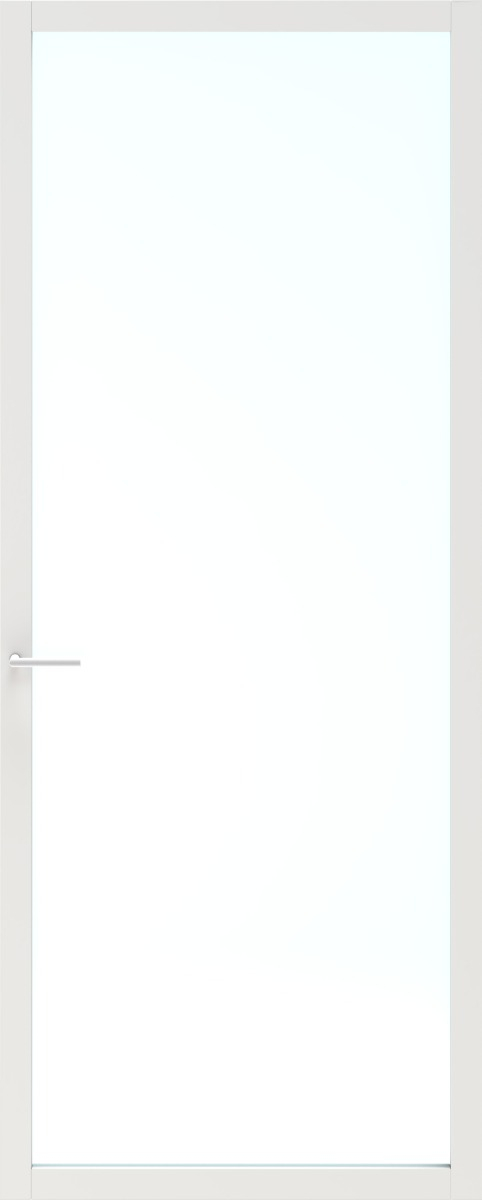 Het blanke glas laat veel daglicht door en zorgt voor zicht tussen ruimtes. Dat maakt deze deur geschikt voor plekken zoals de woonkamer, keuken of een thuiskantoor. Je behoudt een open gevoel, terwijl de ruimtes toch van elkaar gescheiden zijn.