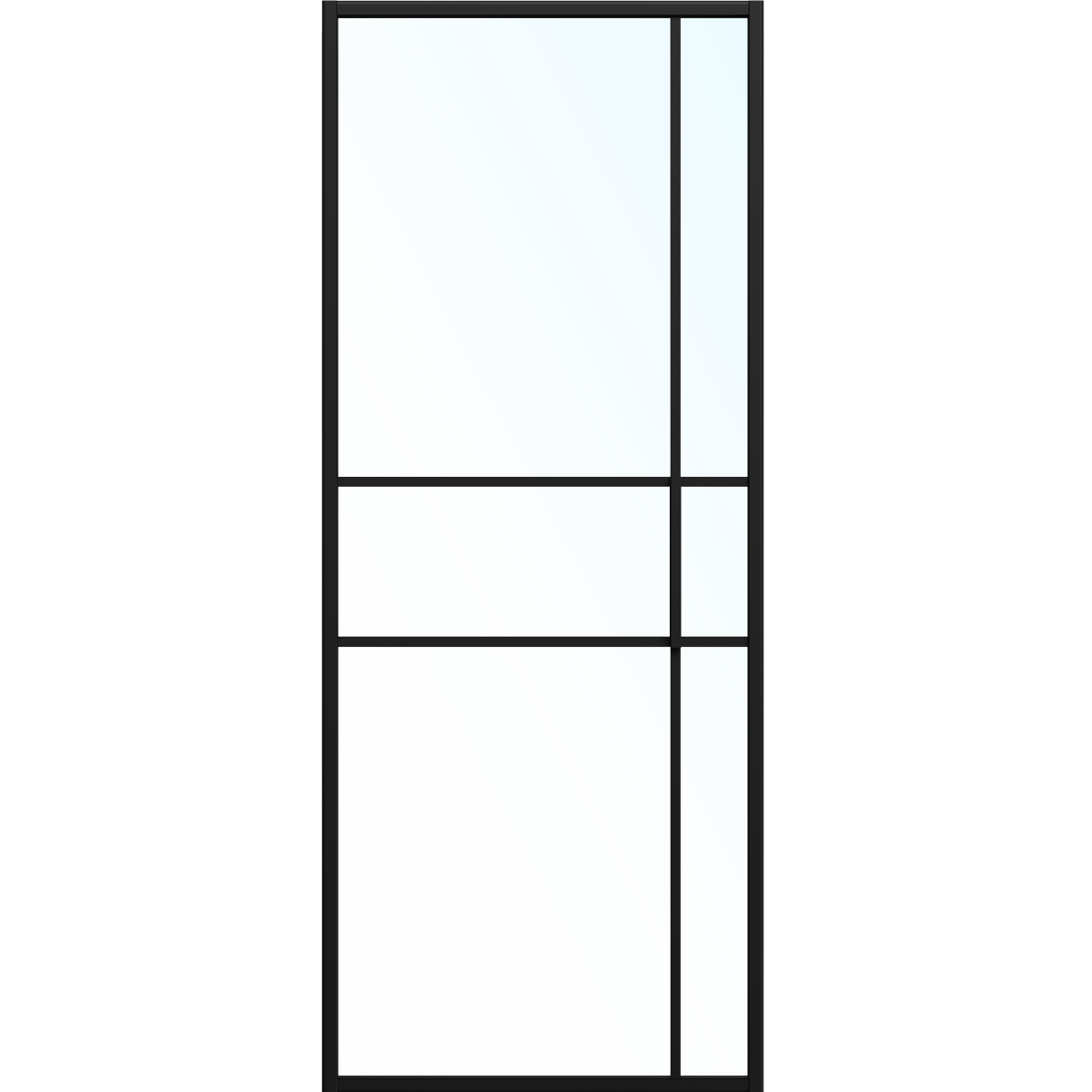 De deur is uitgevoerd met blank glas, waardoor daglicht goed wordt doorgelaten. Dat maakt hem geschikt voor ruimtes waar je licht wilt behouden, zoals tussen een woonkamer en keuken. Je creëert een afscheiding zonder het gevoel van geslotenheid.